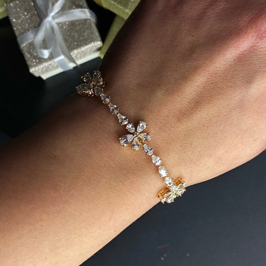 Gold-plated bracelet with zirconia flowers