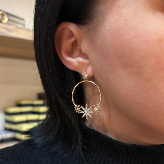 Long gold-plated women's earrings with a star motif