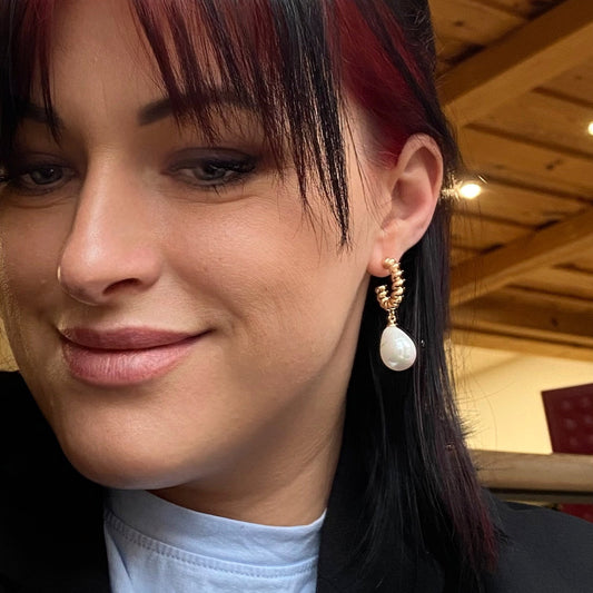 Gold-plated hoop earrings with pearl accents