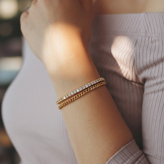 Dubultā Elegance – Apzeltīta rokassprādze ar cirkonijiem