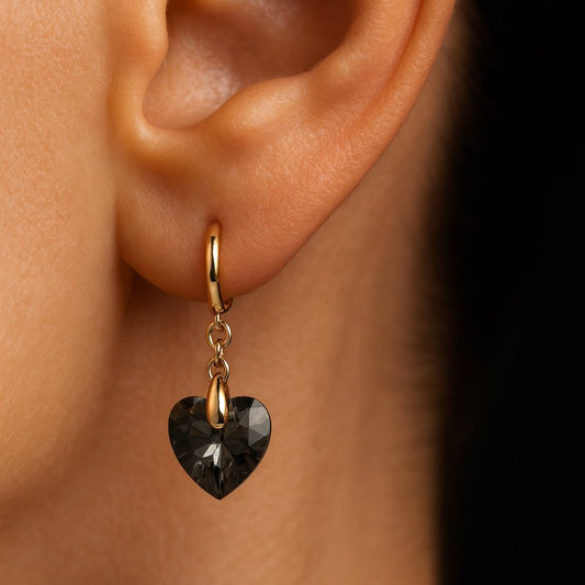 Black Heart – Apzeltīti auskari ar melnu kristālu