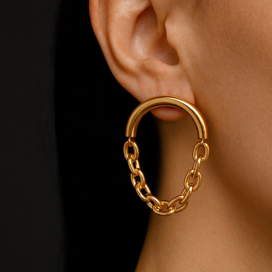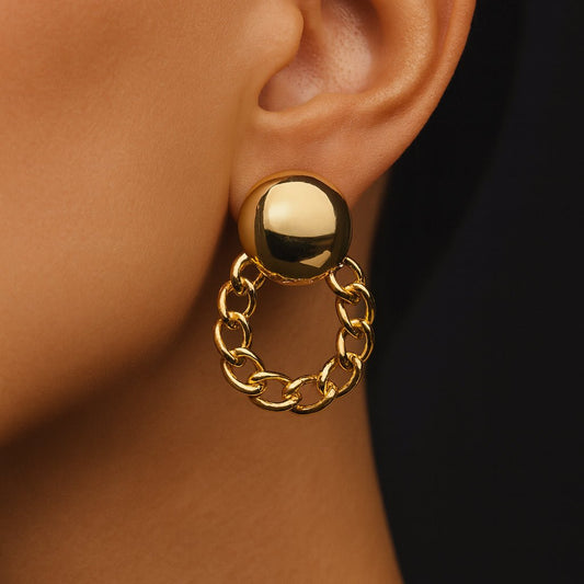 Bold Loop – Gold-plated stud earrings with chain design