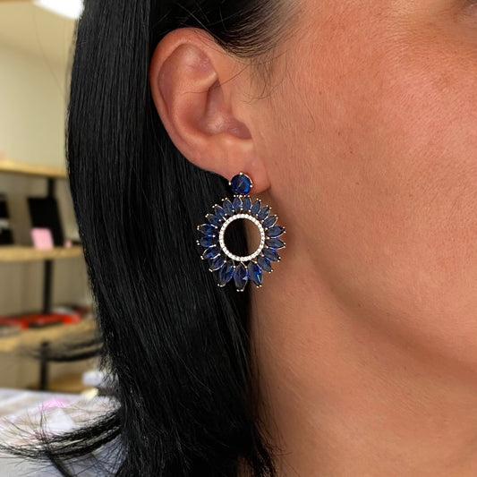Expressive flower earrings with blue crystals