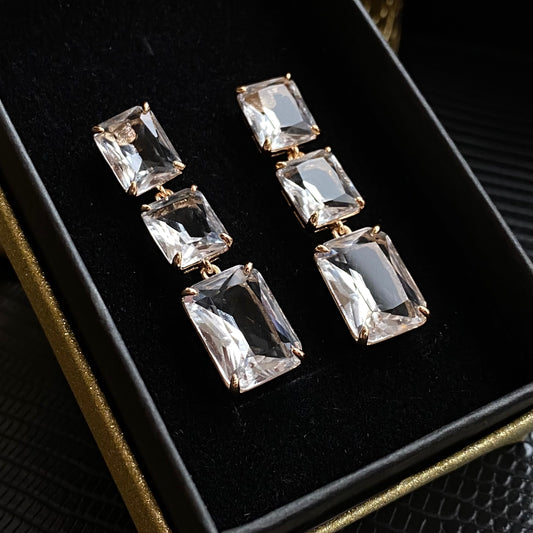 Crystal Drop – Luxurious gold-plated earrings with three crystals