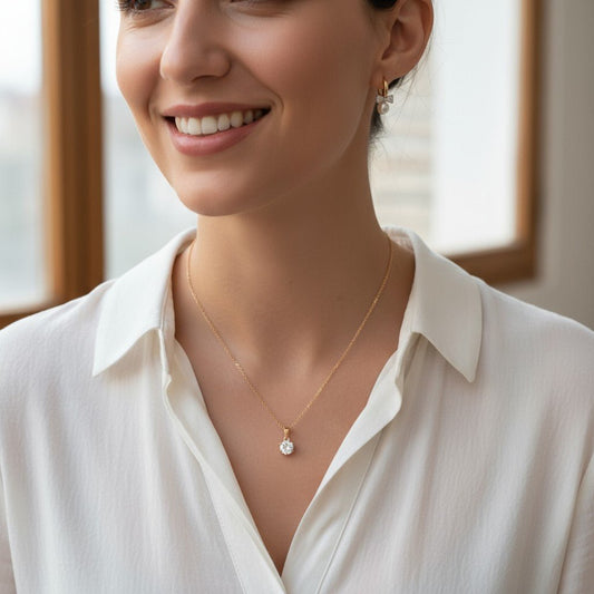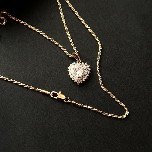 Gold-plated necklace with zirconia and drop-shaped pendants