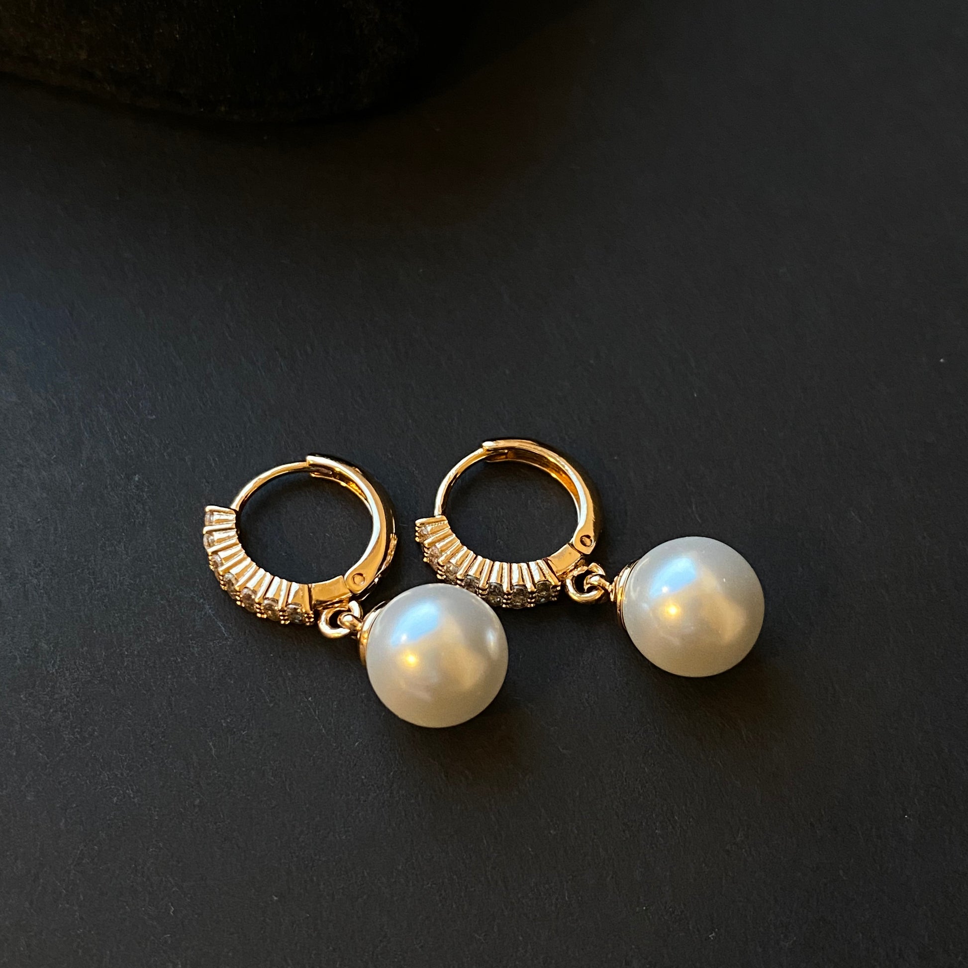 Eleganti riņķīšu auskari, kas apvieno klasisku pērļu šarmu ar mirdzošu kristālu greznību.