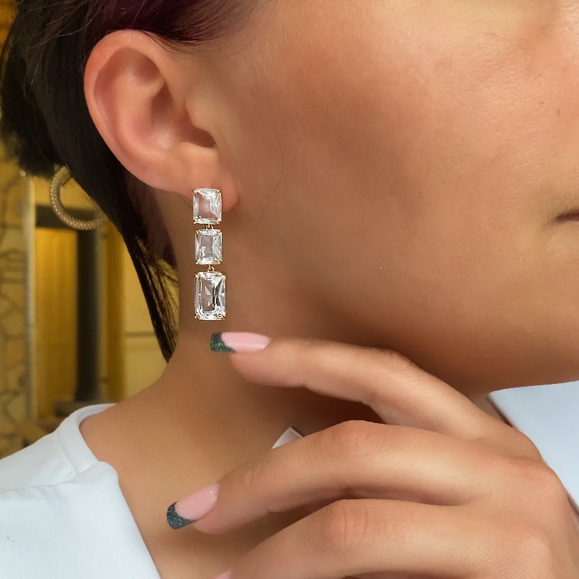 Crystal Drop – Luxurious gold-plated earrings with three crystals